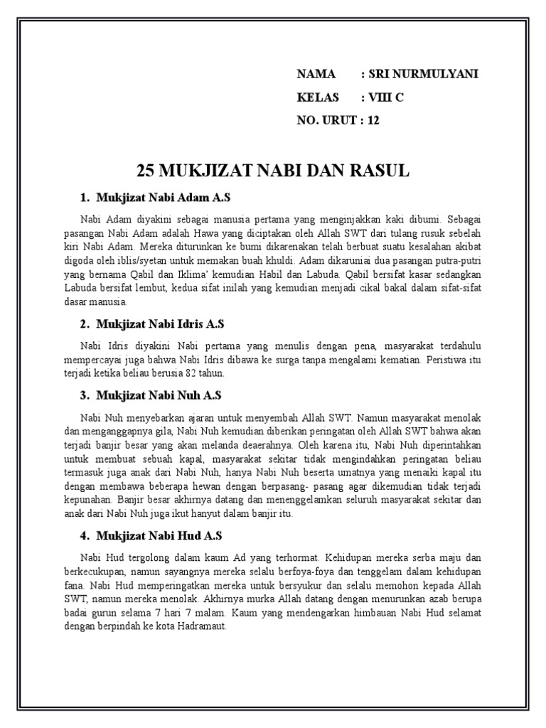 Doc 25 Mukjizat Para Nabi Dan Rasul Nelly Widiyanti Academia Edu
