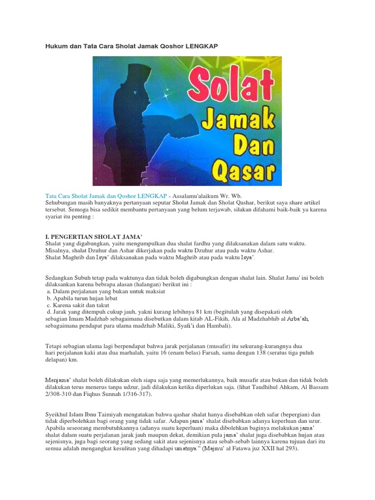 Hukum Dan Tata Cara Sholat Jamak Qoshor Docx
