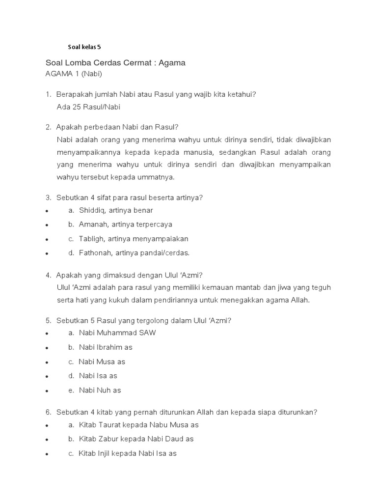 Soal Lcc Agama