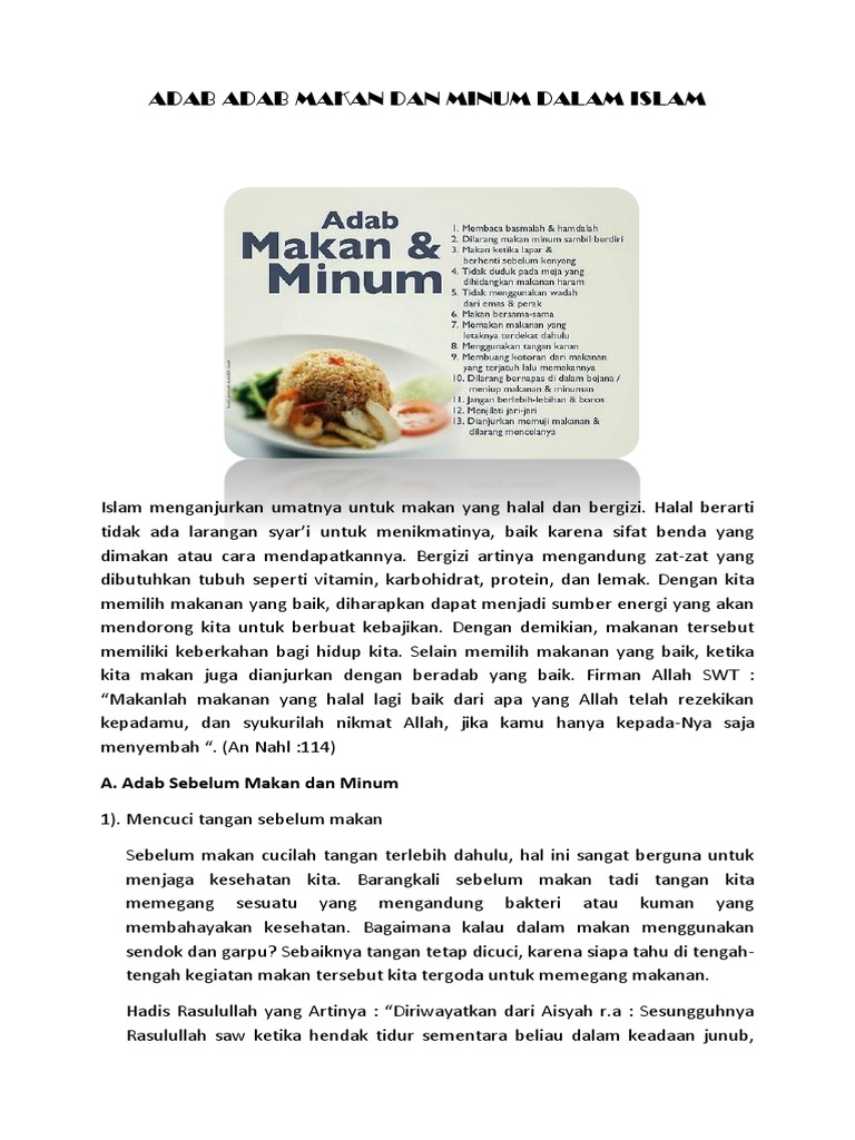 Doc Adab Makan Dan Minum Dalam Ajaran Agama Islam Destia Maulida Academia Edu
