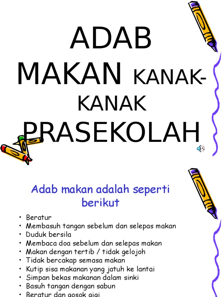 Adab Makan Kanak Kanak Prasekolah Banner Bahan Bantu Mengajar