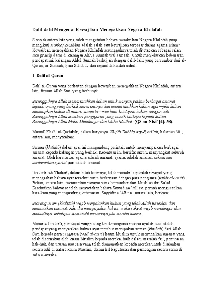 Dalil Dalil Mengenai Kewajiban Menegakkan Negara Khilafah