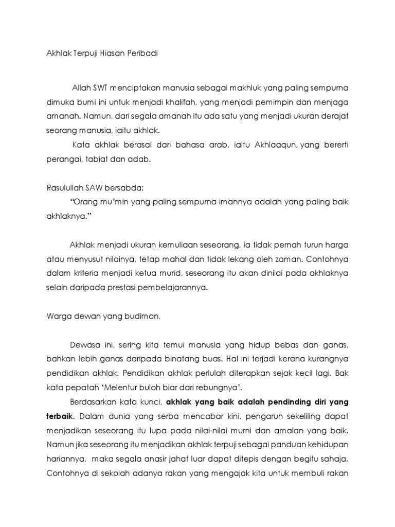 Akhlak Terpuji Hiasan Peribadi Docx