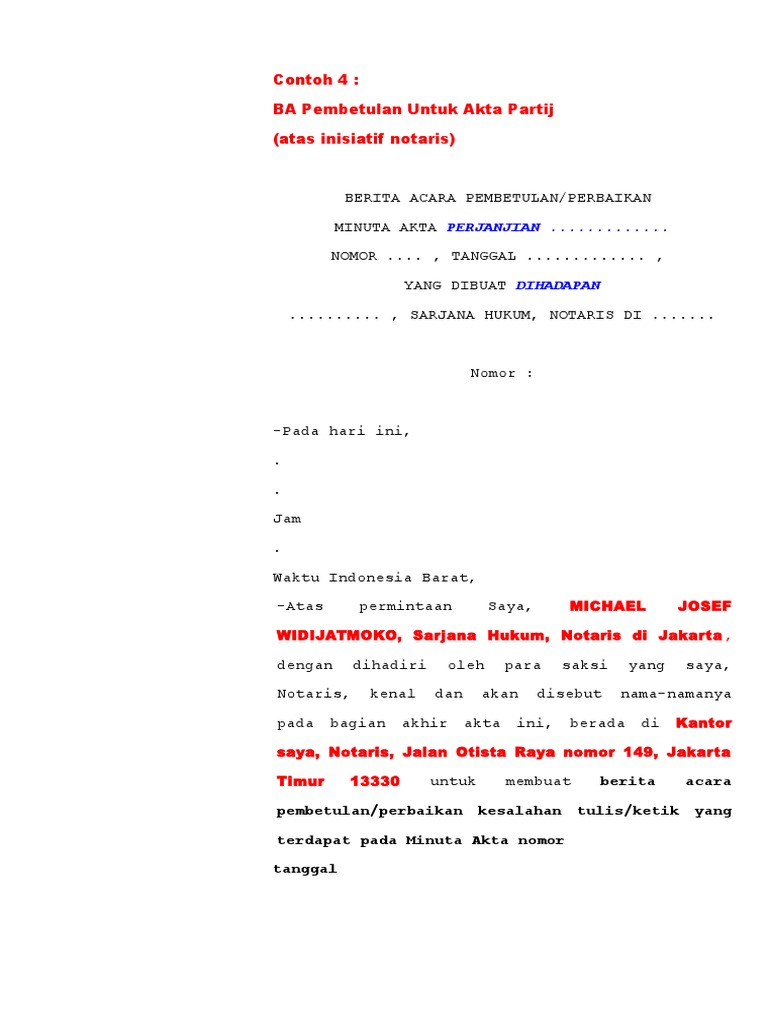 Akta Berita Acara Pembetulan