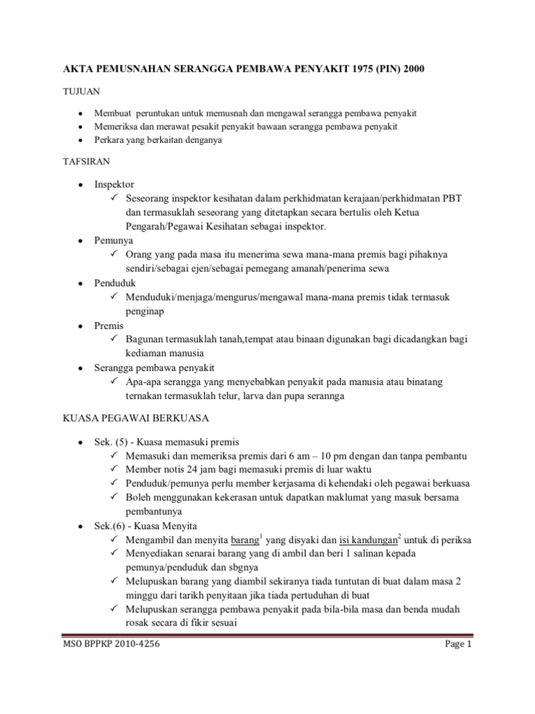 Akta Pemusnahan Serangga Pembawa Penyakit Akta 154 Pnmb2u