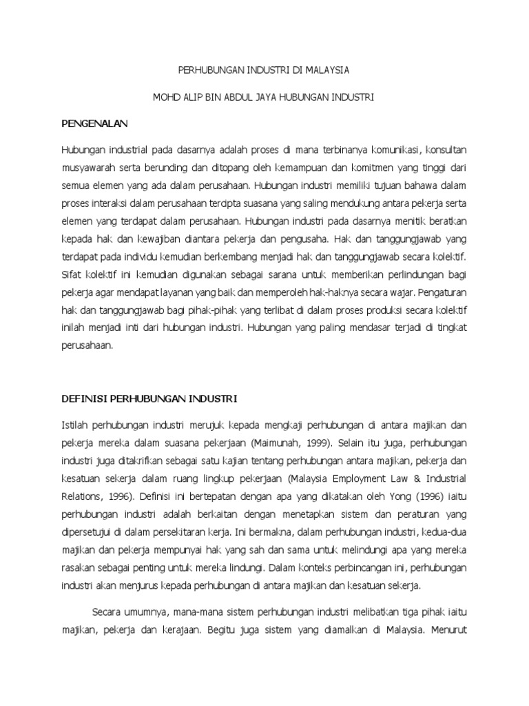 A akta perhubungan industri 1967 b akta kesatuan sekerja 1959. 7 august 1967 part i preliminary short title 1. 1 akta ini mengandungi peruntukan peruntukan mengenai hak majikan dan pekerja dalam penyelesaian pertikaian. Ramai pekerja dan majikan malahan pengamal sumber manusia hr practitioners sering terkeliru dengan pemakaian akta ini dengan akta kerja 1955 employment act 1955.