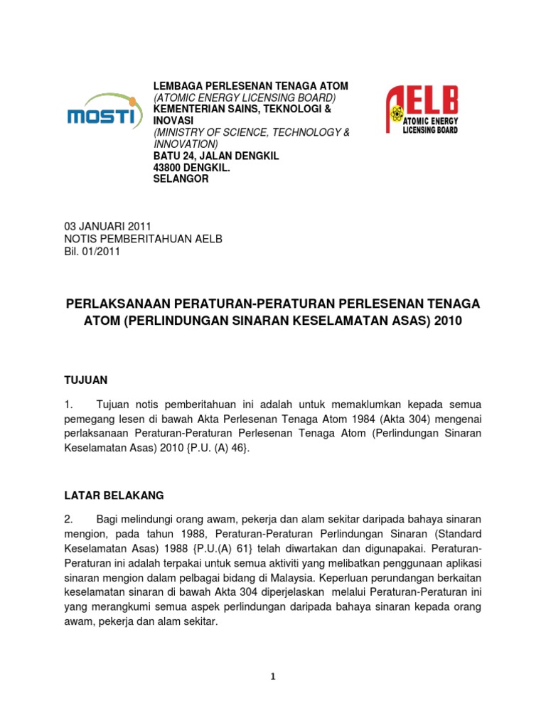 Lembaga Perlesenan Tenaga Atom Atomic Energy Bil04 2017 Tujuan Notis Pemberitahuan Ini Adalah Pdf Document