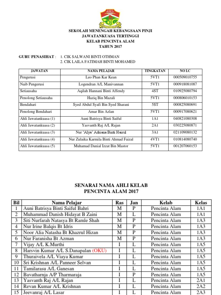 Rancangan Tahunan Kelab Alam Sekitar 2017