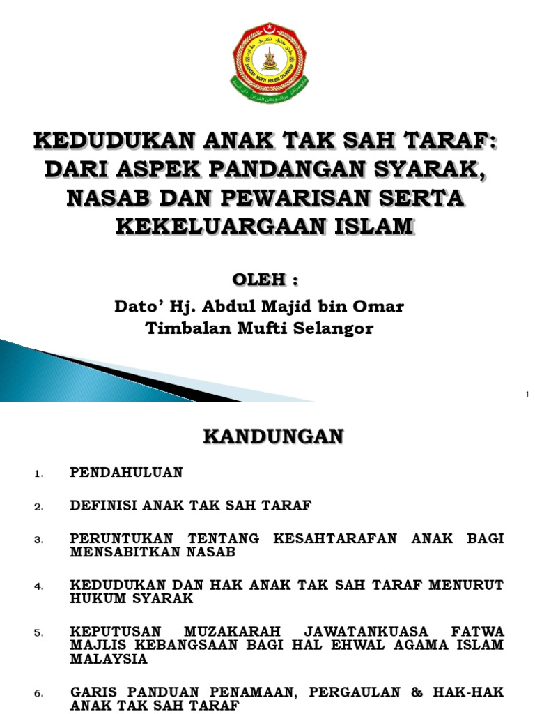 1 Kedudukan Anak Tak Sah Taraf Jabatan Kemajuan Islam
