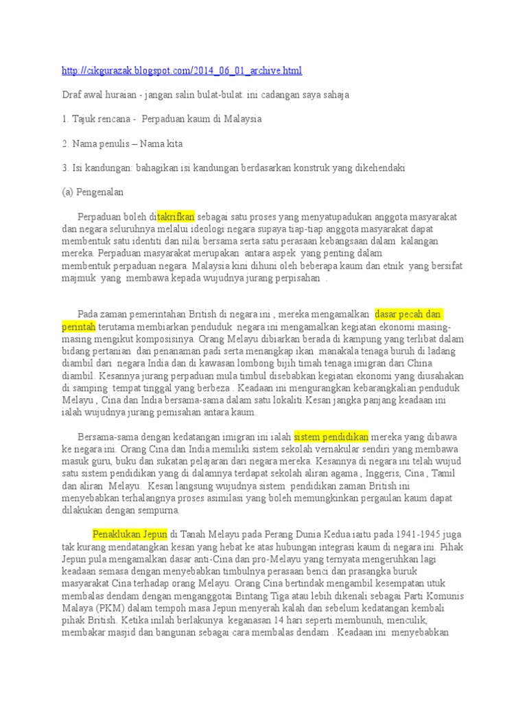 E Folio Hubungan Etnik Pelbagai Kaum Ke Arah Masyarakat Berintegrasi Di Malaysia Hubungan Etnik Pelbagai Kaum Ke Arah Masyarakat Berintegrasi Di Malaysia