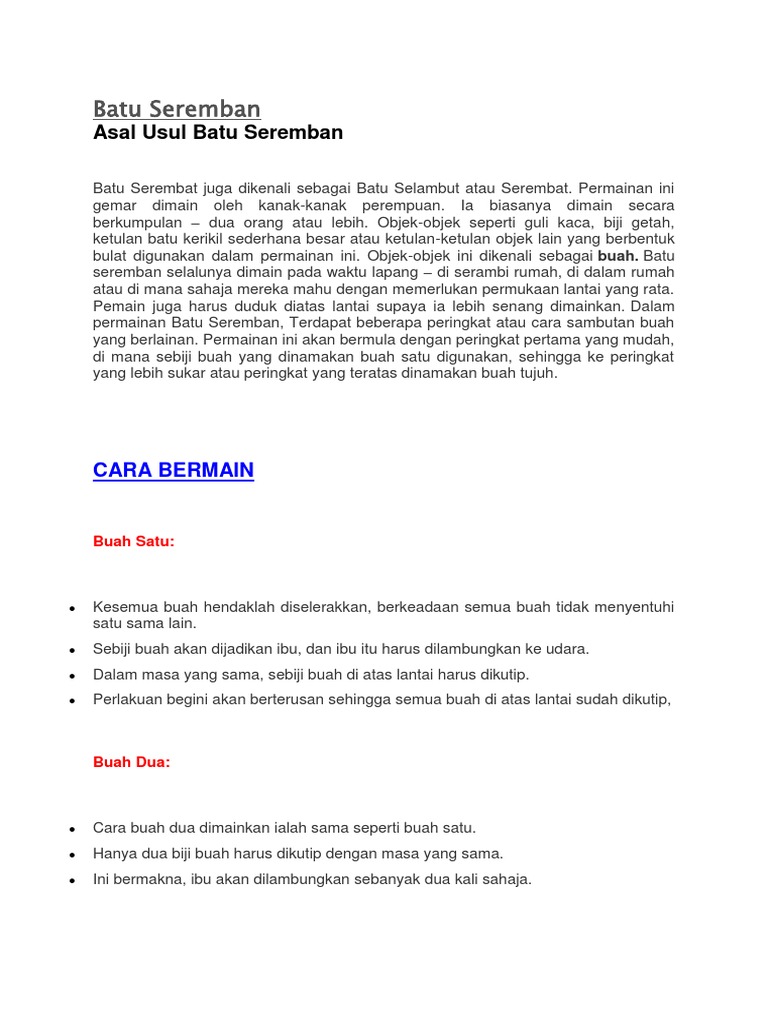 Permainan Tradisional Sejarah Dan Asal Usul Batu Seremban