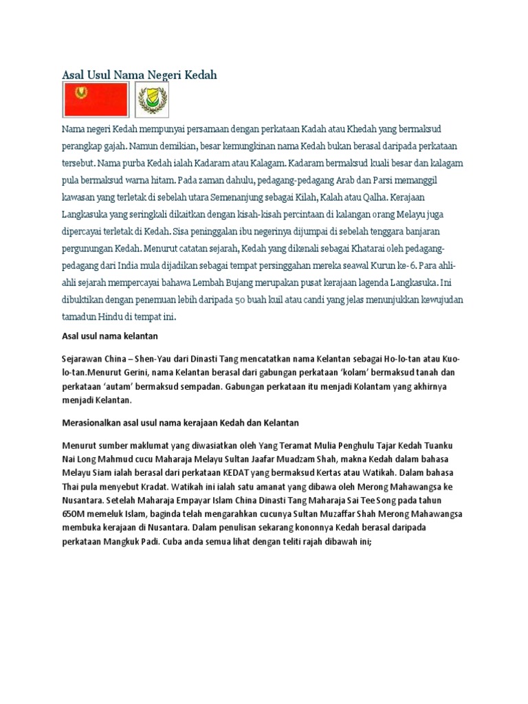 Kisah Dan Asal Usul Nama Negeri Kedah
