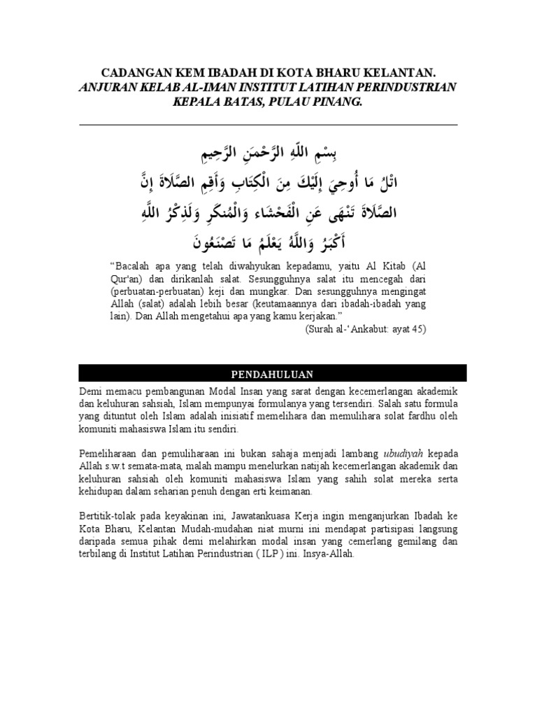 Cadangan Kem Ibadah Di Kota Bharu Kelantan