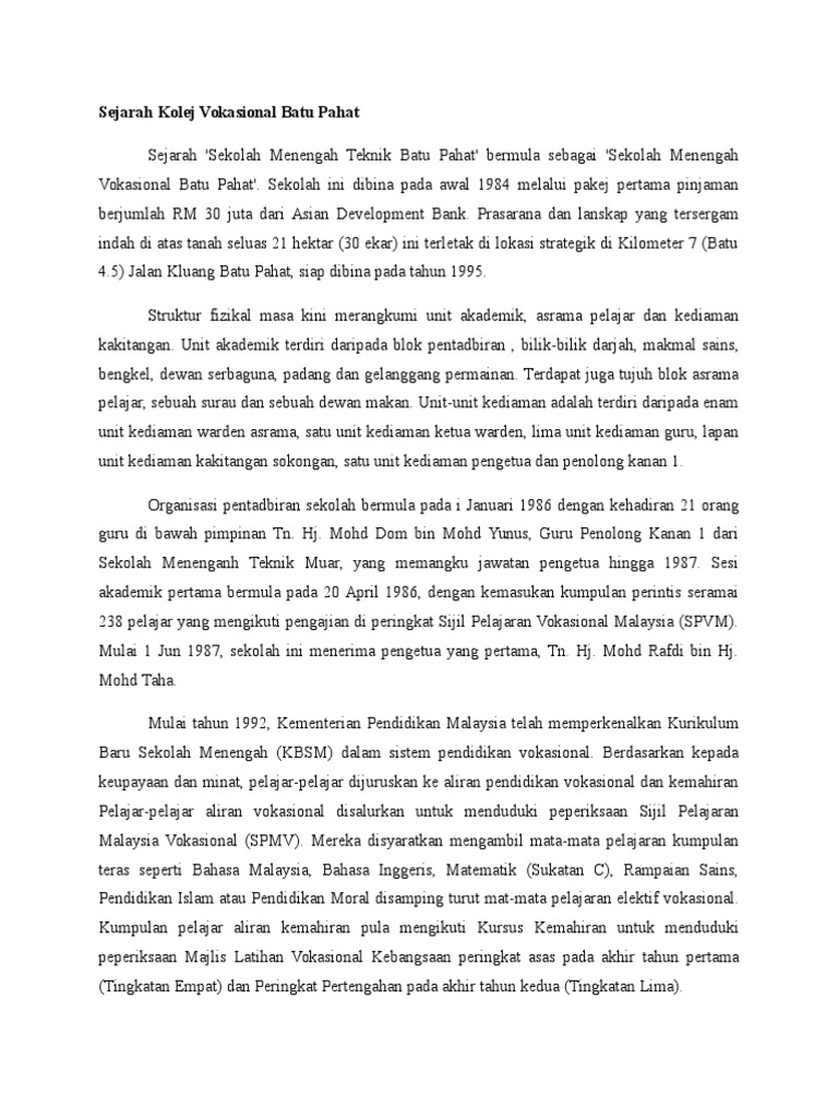 Kolej Vokasional Batu Pahat Kvbp Peneraju Transformasi Teknokrat