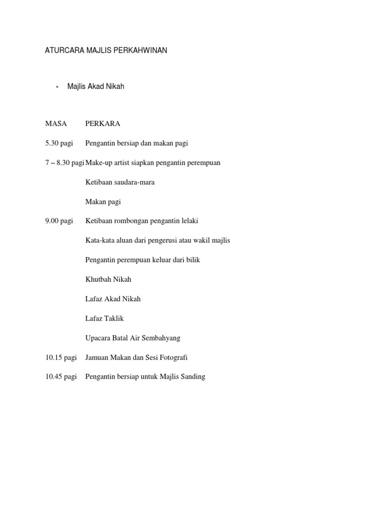 Aturcara Majlis Perkahwinan Melayu Docx