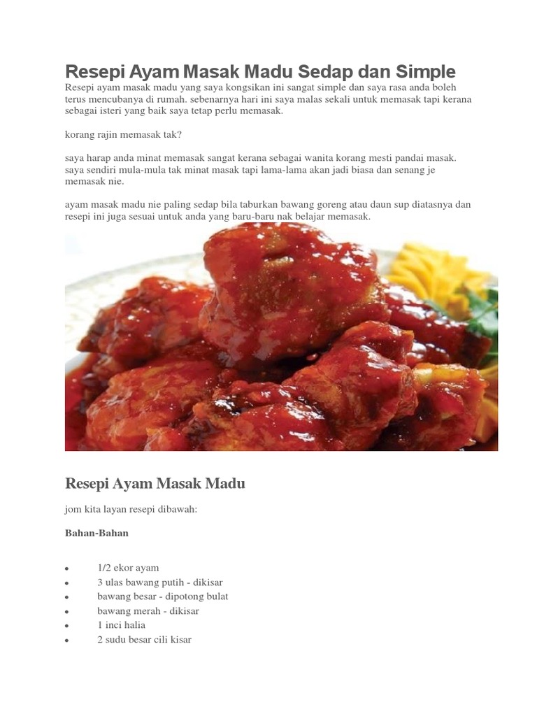 Resepi Ayam Masak Merah Madu Simple Resepi Book I