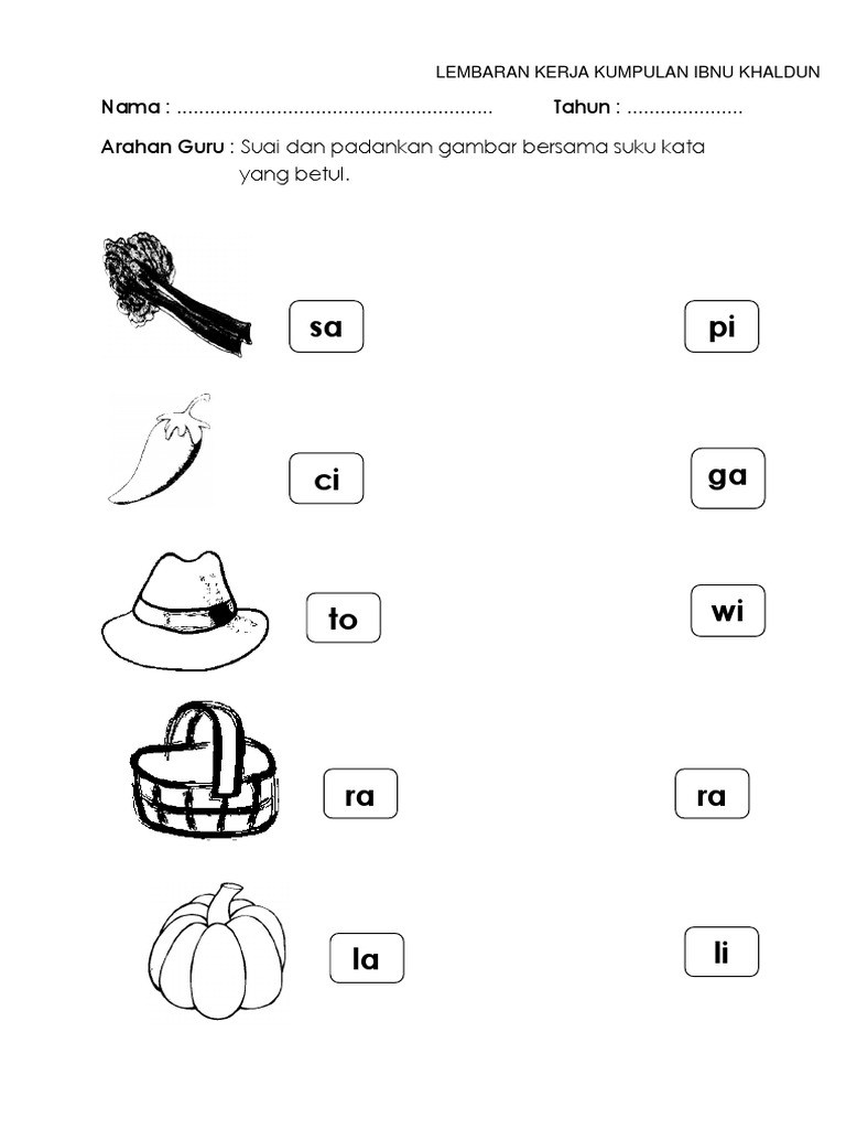 Lembaran Kerja Bahasa Melayu Suku Kata Kv Kvk