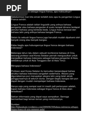 Pengertian Lingua Franca Kanal Informasi Dan Pengetahuan