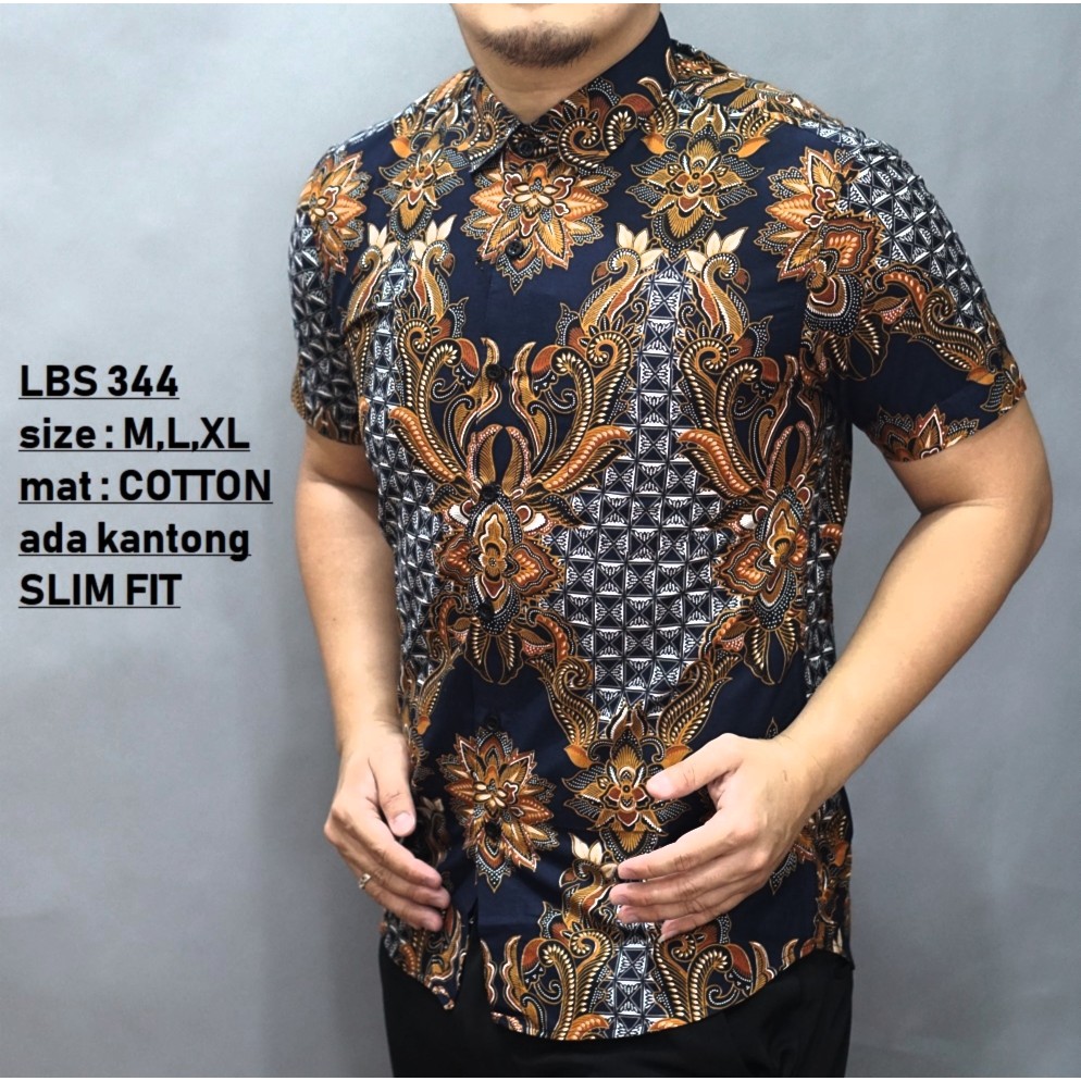 Baju Kemeja Batik Pria Slim Fit Lengan Pendek Baju Batik Slim Fit Pendek Lbs344 Shopee Indonesia
