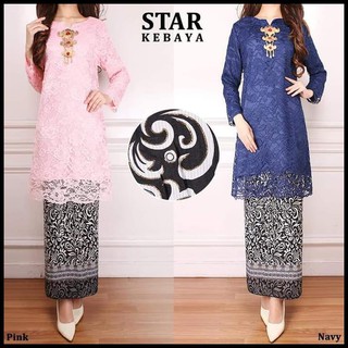 Baju Kurung Kebaya Brokat Biru Muda Shopee Indonesia