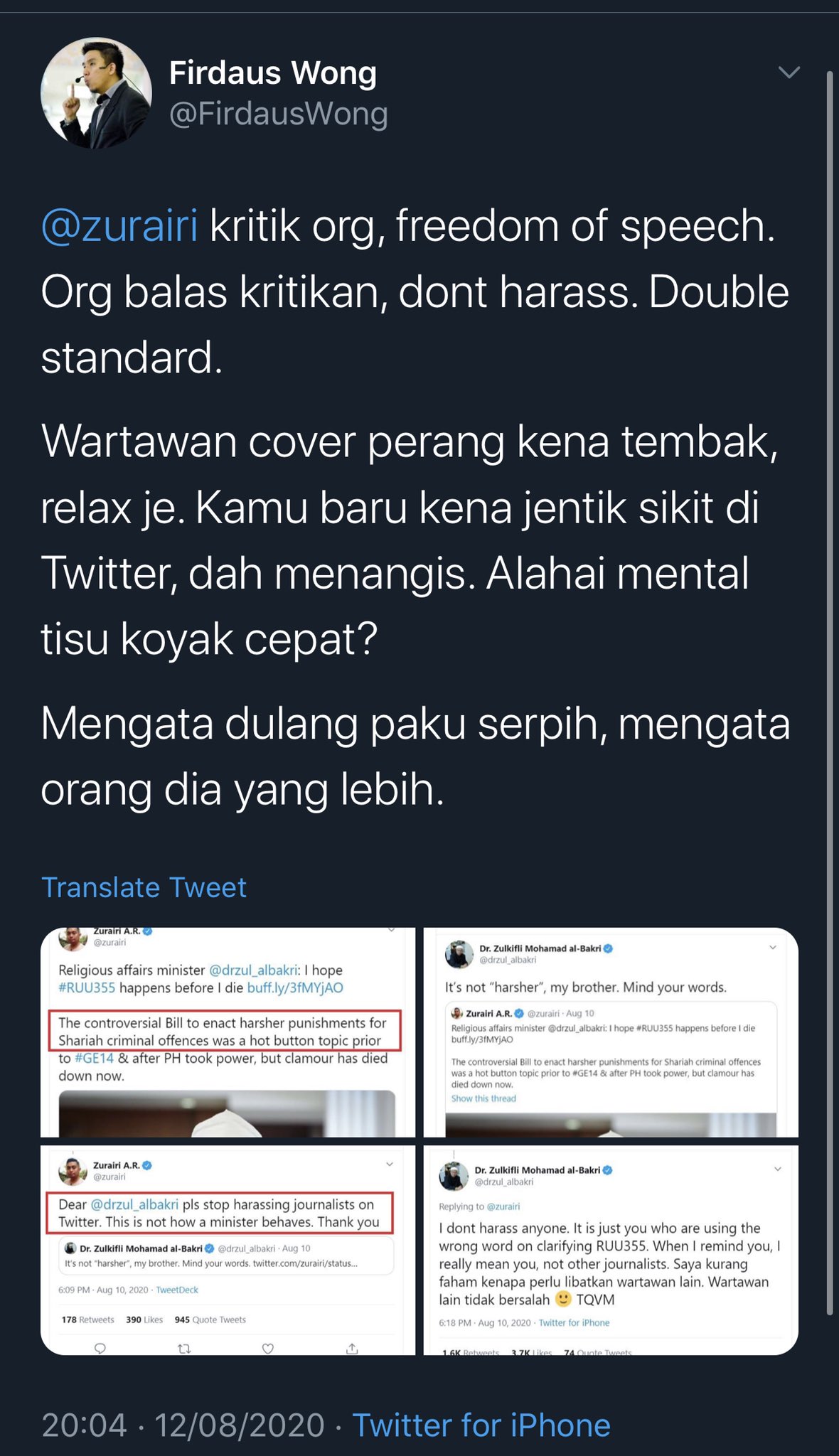 Firdaus Wong On Twitter Dua Kali Saya Tweet Pasal Zurairi Dua Kali Twitter Delete Kebal Juga Dia