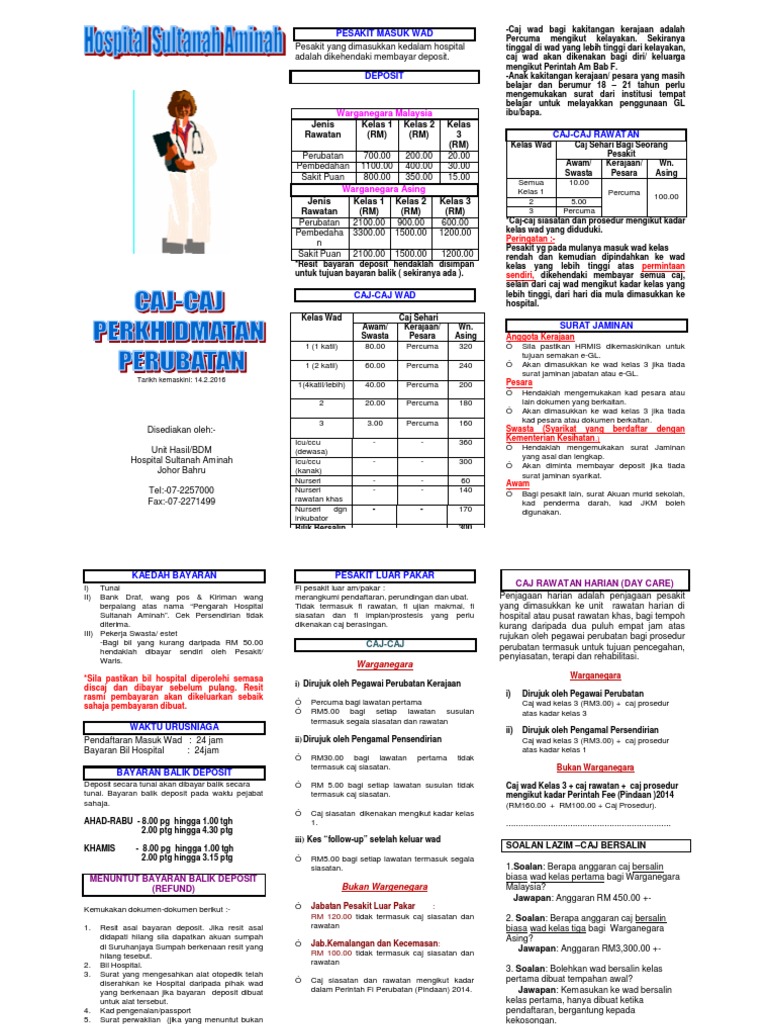 Senarai Kadar Baharu Caj Wad Dan Rawatan Hospital Kerajaan 2017 Info Pelajar