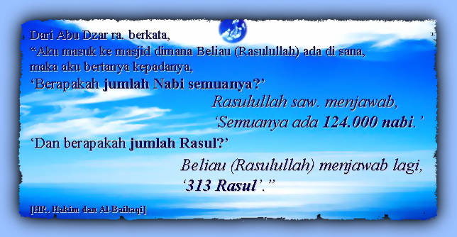Melengkapi keyakinan dan iman kepada rasul allah bahwa jumlah nabi dan rasul yang diketahui umat islam ada perbedaan satu kalangan hanya meyakini 25 nabi dan rasul satu kalangan meyakini ada 124 000 nabi dan 313 rasul. Tetapi di dalam al quran tidak ada surah atau ayat yg menyebutkan tentang jumlah nabi dan rosul.