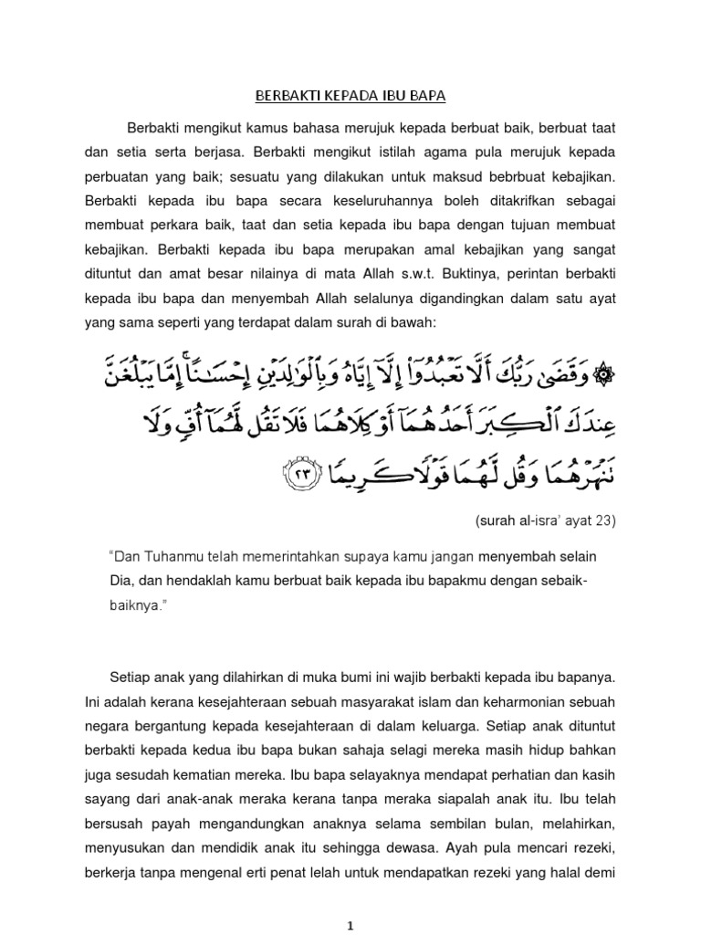 Berbakti Kepada Ibubapa Penyucian Jiwa