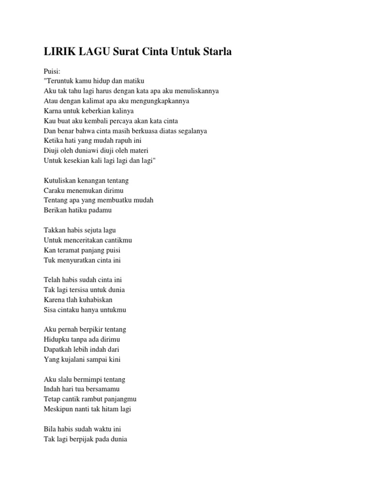 Lirik Lagu Surat Cinta Untuk Starla Doc