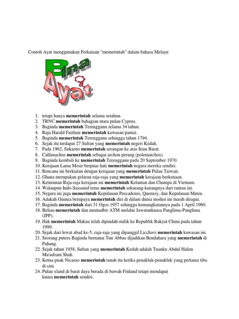 Contoh Ayat Menggunakan Perkataan Memerintah