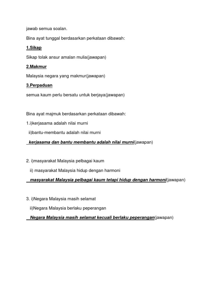 Latihan 1 Tulis Satu Ayat Bagi Setiap Perkataan Di Bawah Orenda