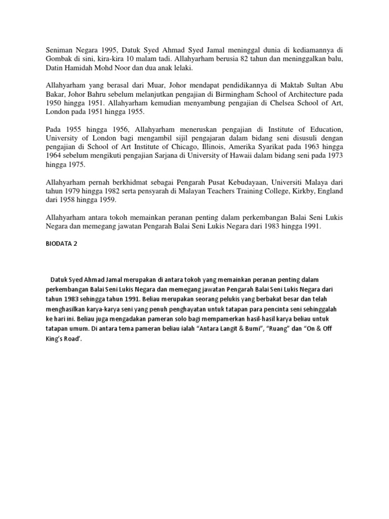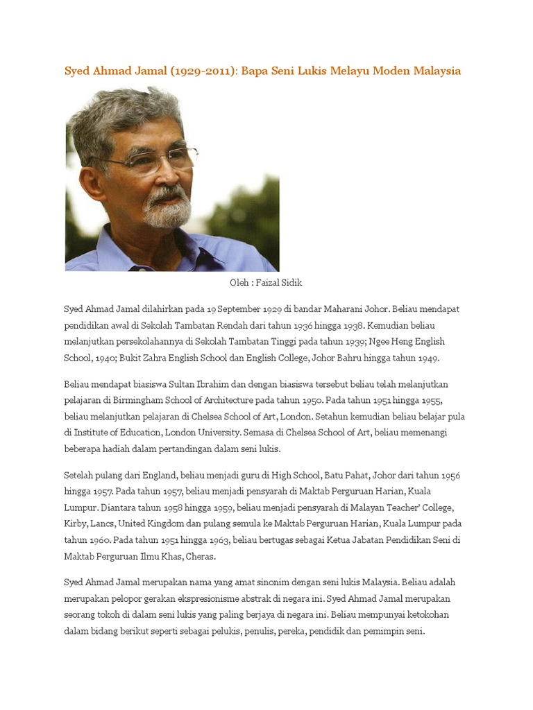 Art History Docx Datuk Syed Ahamd Jamal Biography Syed Ahmad Jamal Was Born On 19th September 1929 In Maharani Town Johor From The Year Of 1936 Until Course Hero