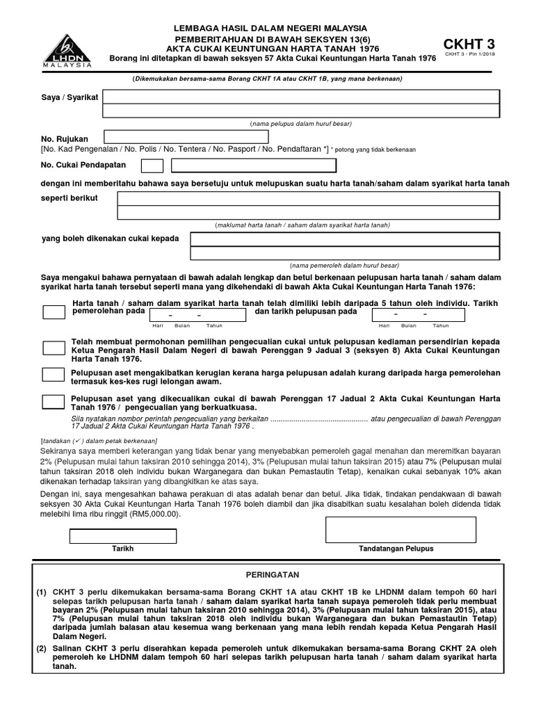 Tarikh Akhir Pengemukaan Borang Ckht 1a 60 Hari Selepas Tarikh Pelupusan Harta Tanah Pdf Free Download