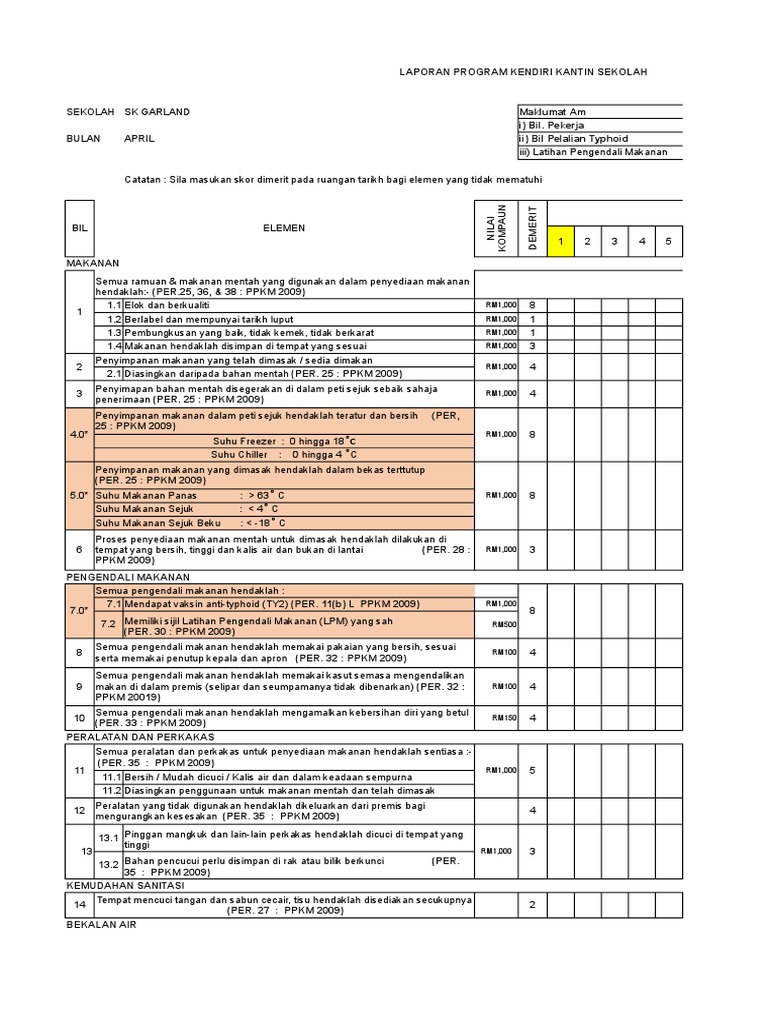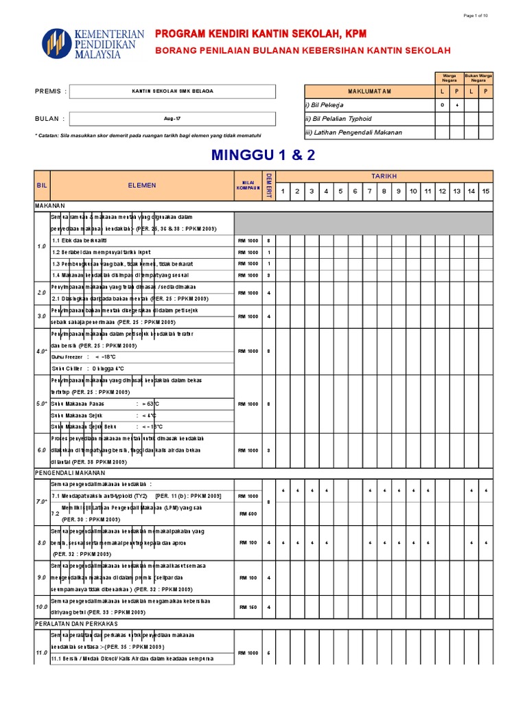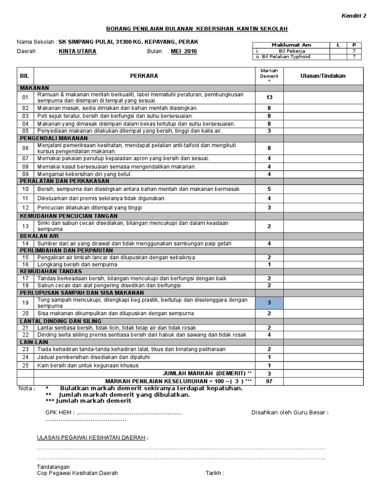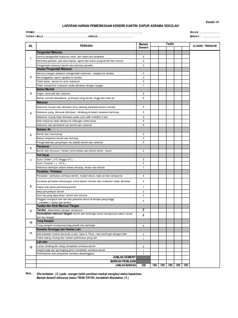 Borang Kendiri 1a 1b 2 2011 Laporan Pemeriksaan Kendiri Kantin Dan Dapur Asrama Sekolah