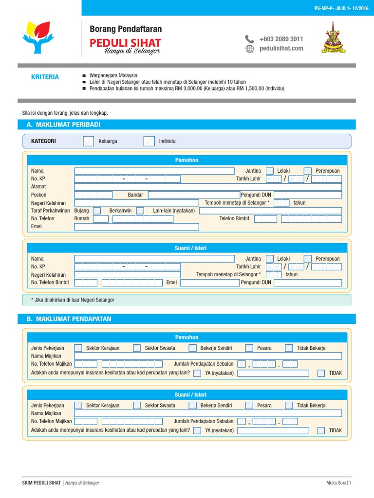 Selangor Free Medical Card Download Borang Pendaftaran Kad Perubatan Skim Peduli Sihat Submit After 22 December 2016