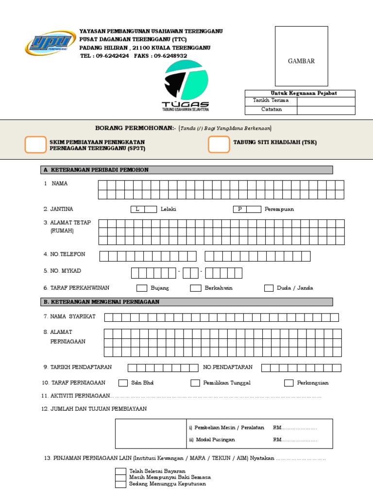 Borang Skim Pembiayaan Peningkatan Perniagaan Terengganu Sp3t Tabung Siti Khadijah Tsk 2019