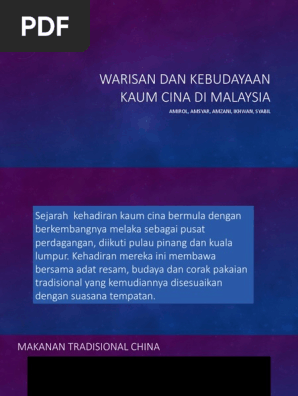 7 7 upvotes mark this document as useful 2 2 downvotes mark this document as not useful embed. Tersebut menjadi terus menerus terserlah. Warisan dan kebudayaan kaum cina di malaysia. Masyarakat malaysia telah digambarkan sebagai asia dalam miniatur.