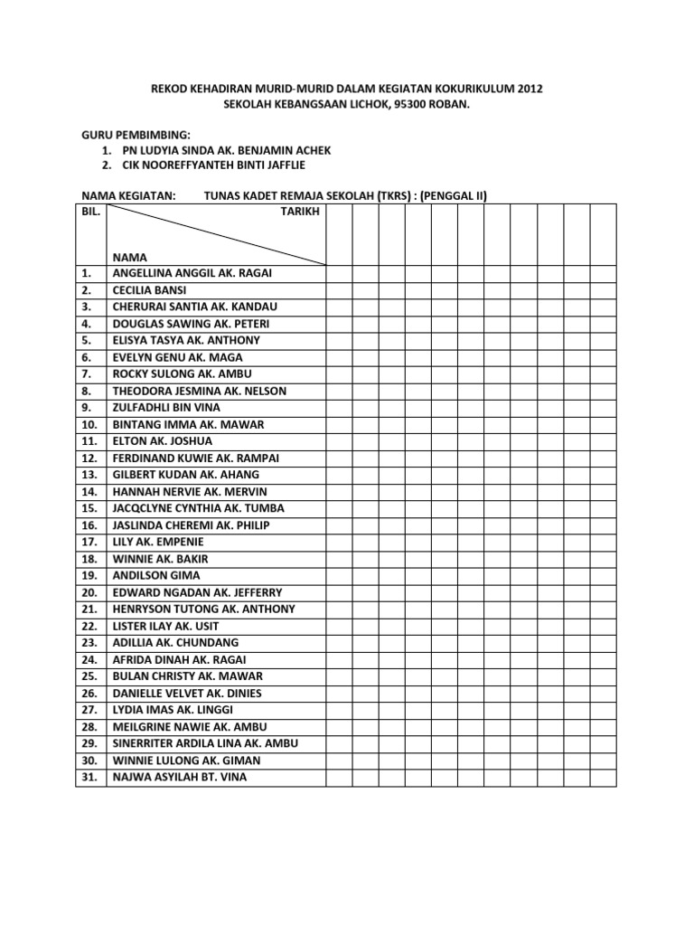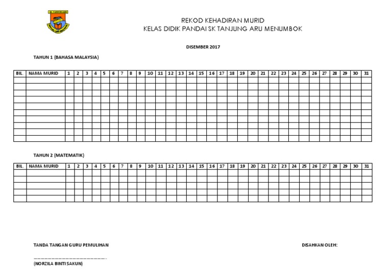 Template ini juga boleh dijadikan buku rekod kedatangan murid yang merupakan dokumen penting sekolah.