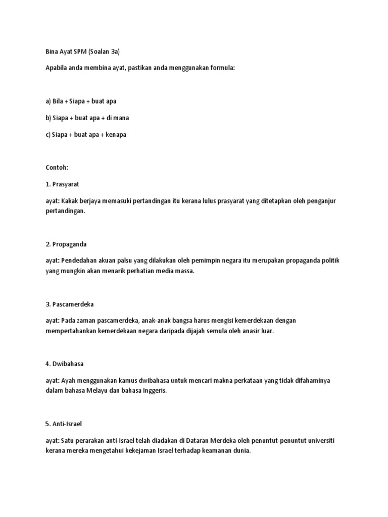 Soalan Bina Ayat Bahasa Melayu Tahun 5 Terengganu V
