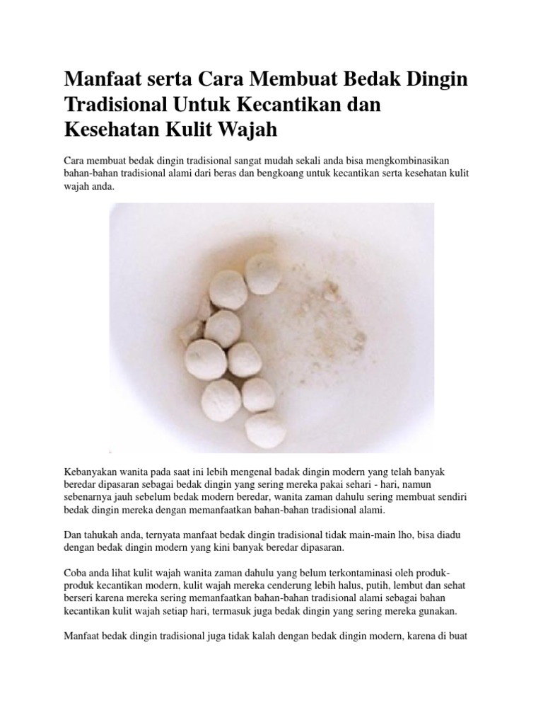 Manfaat Serta Cara Membuat Bedak Dingin Tradisional Untuk Kecantikan Dan Kesehatan Kulit Wajah