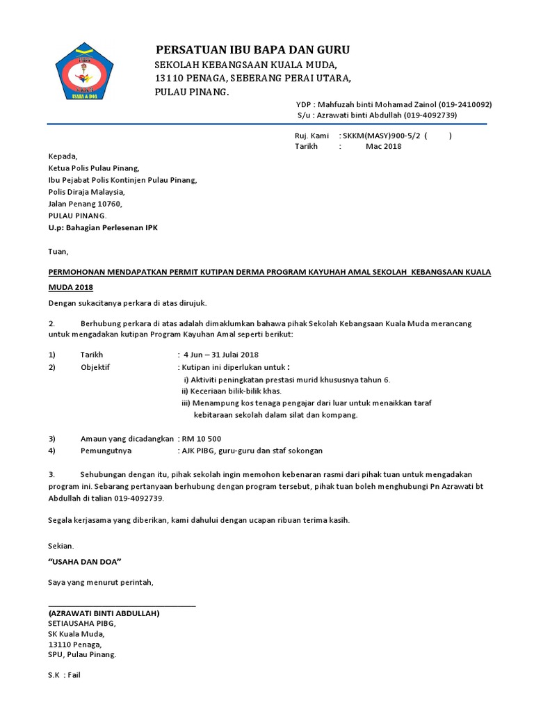Contoh Surat Permohonan Permit Kutipan Derma Kayuhan Amal